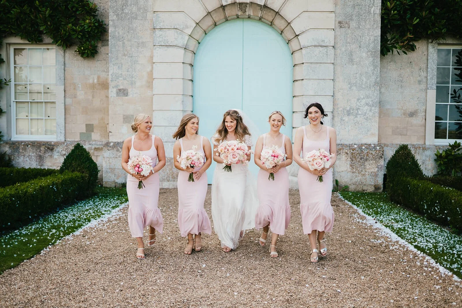 They made their way towards Firle’s iconic blue doors which lead into the courtyard, where guests had gathered for the ceremony.