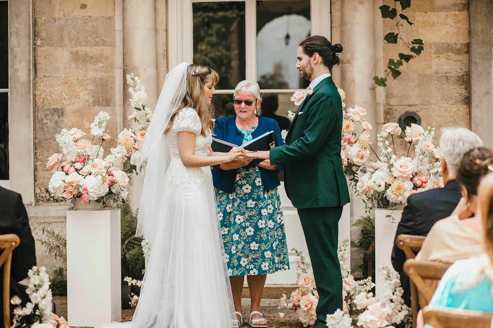 Set against the historic backdrop of Firle Place, Lydia and Jason’s outdoor ceremony took place in the courtyard framed by beautiful florals from Go Botanica.